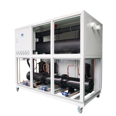 冷水機是一種通過壓縮機、蒸發(fā)器、冷凝器、膨脹閥所組成的制冷設(shè)備。水冷箱體式冷水機是因為其冷凝器(散熱器)為殼管式,通過外接冷卻水塔,冷卻水泵,使用冷卻水塔的水來為冷水機進行散熱。
