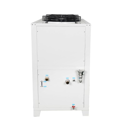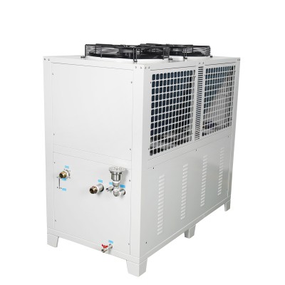 1.冷水機是一種是由制冷系統,水路系統,電氣系統三大組成部分,核心為制冷系統,制冷系統是由壓縮機、蒸發器、冷凝器、膨脹閥所組成的制冷設備。水路系統由水泵管路和相關閥門組件構成。電氣系統由溫度控制器和電氣元器件構成。風冷箱體式冷水機是因為其冷凝器(散熱器)為翅片式,通過一個或者多個外轉子風機與環境進行散熱的冷水機。